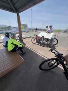 松江市役所スタート組とタクワサイクルスタート組に分かれて、魚瀬の日本海の景色を眺めて、 お肉を食べたら