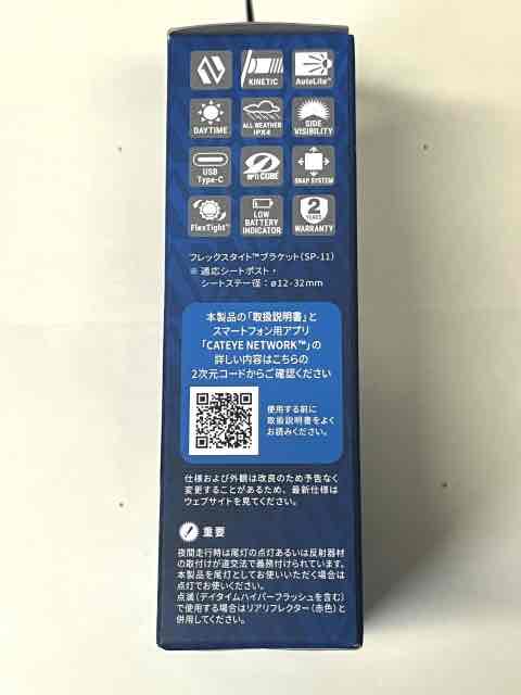 - 自転車の減速を感知するとモードに関係なく約2.5秒ハイモードの2倍の明るさで点灯するブレーキモード搭載